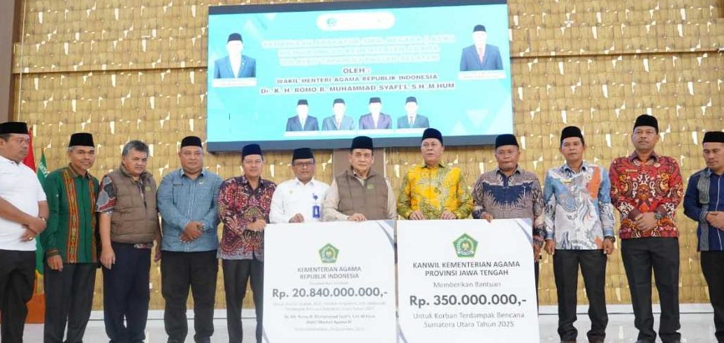 Padangsidimpuan – Wakil Menteri Agama Romo Muhammad Syaf’i menyalurkan bantuan tanggap darurat senilai Rp20,84 miliar untuk pemulihan sarana dan prasarana serta fasilitas umum yang terdampak banjir di Provinsi Sumatra Utara, Rabu (24/12/2025).
