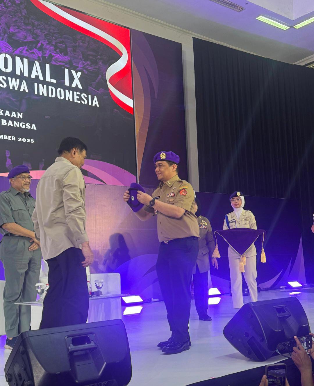 Ia menjelaskan bahwa baret ungu memiliki makna mendalam sebagai simbol kehormatan, loyalitas, dan komitmen terhadap negara. Pemberian baret kepada Jenderal Djamari, lanjutnya, menjadi penegasan bahwa nilai-nilai yang dijunjung Menwa seperti disiplin, patriotisme, dan dedikasi tercermin dalam perjalanan pengabdian sang jenderal.