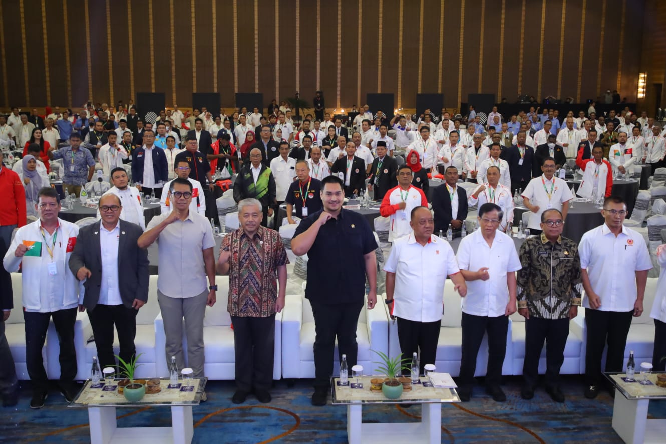 Jakarta: Menteri Pemuda dan Olahraga (Menpora) RI Dito Ariotedjo menegaskan penyelenggaraan Pekan Olahraga Nasional (PON) ke-21 di Aceh dan Sumut harus sukses secara penyelenggaraan, prestasi, dan administrasi. Penegasan itu disampaikannya saat membuka Rapat Kerja Nasional (Rakernas) Komite Olahraga Nasional Indonesia (KONI) tahun 2024 di ballroom Hotel Pullman Podomoro City, Rabu (3/7) pagi.